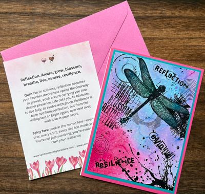 Though I’ve been making cards for 25 years, the last few years of my work truly reflects my own journey and where I would wish every person to be. The journey never ends (nor should it!), and I love for people to have tools and visuals to support and encourage themselves along the way. Never underestimate the impact of a strong message or visual image. It always seems to arrive and be put in front of us just exactly when we need it.